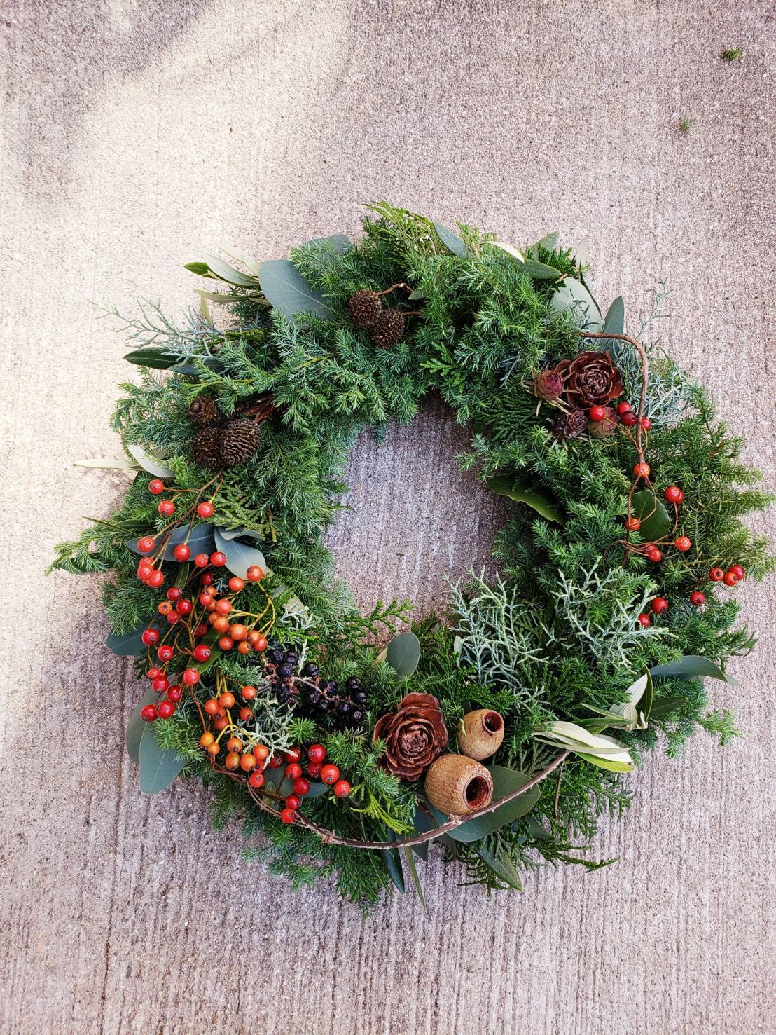 12月は「フレッシュな針葉樹で作るクリスマスリース」です。